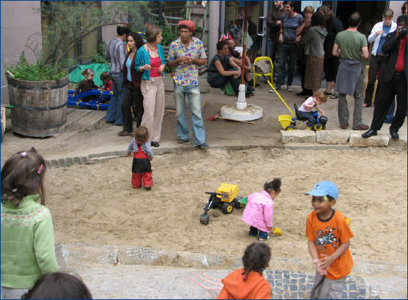 Am 13. Juli 2008 feierten wir unser erstes Sommerfest. Auch wenn Petrus den Tag nicht gerade mit gutem Wetter begleitete, so hatten Klein wie Groß sichtlich Spaß. Das bestens ausgestattete Buffet der Eltern trug nicht unwesentlich dazu bei. Zur Überraschung der Eltern hatten die Erzieher mit den Kinder ein paar kleine Gesangs- und Theaterstücke vor- bzw. aufgeführt. So standen viele unserer Kinder heute das erste Mal in ihrem Leben auf der Bühne. Begeisterte Beifallstürme der Eltern war ihr Dank....