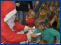Unglücklicherweise fiel der Nikolausitag 2009 auf einen Sonntag. So bemühte sich das Team, St. Nikolausi früher in die Kita zu locken. Voller Spannung warteten die Kinder bereits am 04.12. im Morgenkreis auf ihn. Kurz nach 09:00 stand er dann plötzlich mit prall gefüllten Sack mitten in der Kita. Er gab sich zufrieden mit den Kindern, da sie im letzten Jahr seine Anregung, künftig besser aufzuräumen, ernst genommen hatten. Nachdem er neben Lob auch kleine Tadel vorgetragen und die Kinder ihm u.a. verspochen hatten, sich künftig nicht mehr gegenseitig die Haare zu schneiden bzw. die Schlüssel der Erziehern zu verstecken, belohnten sie ihn mit toll einstudierten Liedern und Gedichten. Anschließend durfte sich jeder in seinem Sack bedienen und der Verlockung der Schokolade hingeben. Fast alle hatten sich gut mit ihm verstanden - wenige blieben ehrfürchtig in der Ecke stehen. Wehmütig ließen sie ihn ziehen und gaben ihm zu verstehen, dass er im nächsten Jahr unbedingt wieder kommen muss....