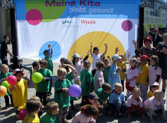 Besuch der Abschlussveranstaltung des Projektes "Meine Kita bleibt gesund!", die am 20. April 09 anlässlich des Auftaktes der Europäischen Impfwoche am Pariser Platz und in der Europäischen Vertretung organisiert wurde. Gesundheit stand im Mittelpunkt: Was machen Kitas, um gesund zu bleiben? Die Aktion informierte Erzieherinnen und Erzieher, Eltern, aber vor allem eben auch Kinder über den Schutz vor Krankheiten. Viele Kitas achten bereits auf Bewegung und gesunde Ernährung, doch auch Impfen ist für die Prävention von Krankheiten sehr wichtig - daher der Slogan der Aktion: "Impfschutz ist so wichtig für die Gesundheit wie Bewegung und gesunde Ernährung".