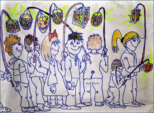 Am Freitag den 13.11. war es wieder so weit. Wie im vergangenen Jahr trafen sich über 100 Casa Azulianer in der Reinhardtstraße, um gemeinsam mit ihren süßen KnirpsenInnen und ihren neu geschaffenen Leuchtwunderwerken singend durch den Kiez zu promenieren. Zwar kam kein Martinsschimmel mehr vorbei, auch roch es nicht mehr nach Zimtstangen, doch großen Spaß gemacht hat der verspätete St. Martinsumzug durch die Straßenschluchten des Kiezes trotzdem allen. Zurück in der Kita verwöhnte uns Laurent mit köstlicher Kürbissuppe und warmen Getränken. Mit einem die Gemüter wärmenden Lagerfeuer im Garten vertrieben wir die Regenwolken und ließen das vergnügliche Lichter- und Feuerfest langsam ausklingen.